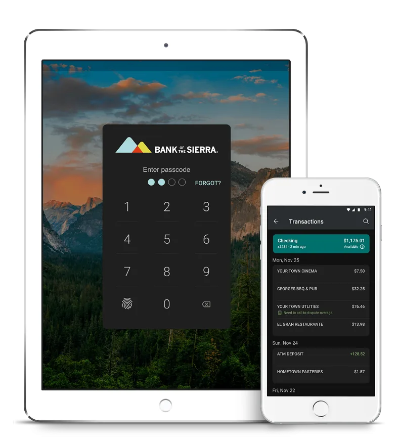 2. Deposits are subject to verification and not available for immediate withdrawal. Restrictions apply. A printable version of the full Mobile Banking and Mobile Check Deposit agreement can be viewed byclicking here. For further information, please contact a Bank of the Sierra representative.